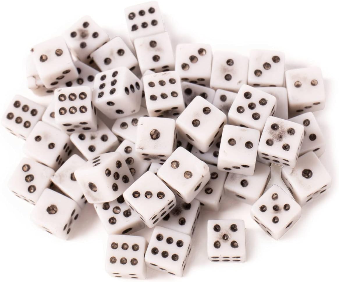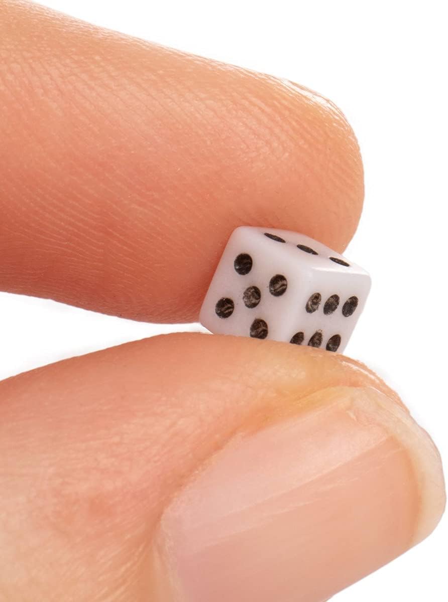 All set for a rolling good time? This 50 pack of 5mm microdice are just right for when you need a ton of tiny dice! Whether using them to add a unique spin to your favorite family dice game or gluing them as part of a unique gift for your favorite geek, these mini dice add personality to any gaming event. Use for decoration at casino themed game night parties, add to your Las Vegas scrapbook page, or roll them on your favorite battlefield terrain in the war game of your choice. It's impossible to have too many dice, and this set of fifty will let you top up your collection, fill up your bead tray, or have you build your own DIY board game with a handful of tiny small dice. Hankering for the thrill of chucking FIFTY dice at once? It feels pretty good. See if you can roll a 300! The odds are terrible, but that's okay. On the other hand, bedazzle your geeky wedding invite or dice tower with these tiny novelty decorative dice, or use for elementary and early childhood math classroom learning and counting lessons.